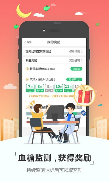 1.全面血糖管理,有效控糖血糖监测分析和预警;运动饮食建议;用药指导与提醒,助您轻松管理糖尿病