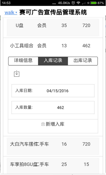 1、赛可广告宣传品台账管理系统,目前仅限公司内网使用;