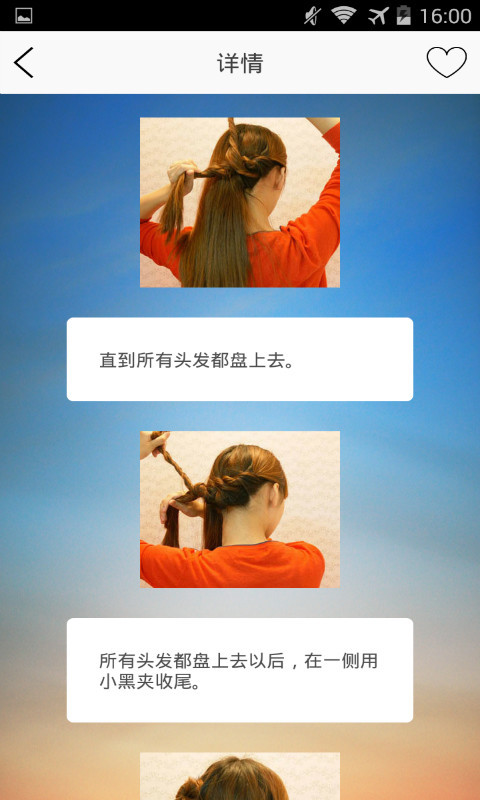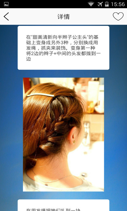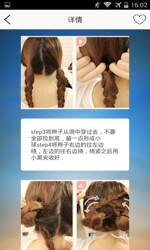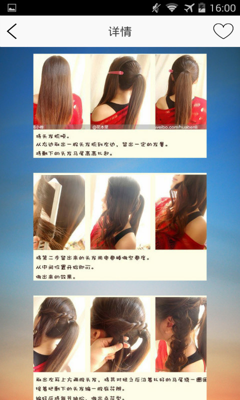 1、扎发技巧模块详细介绍扎头发的方法,每个步骤都有文字和图片详细的描述