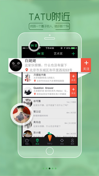 附近好友:让文身咨询、文身交流更直接、更便利,再也不用搜索找答案。