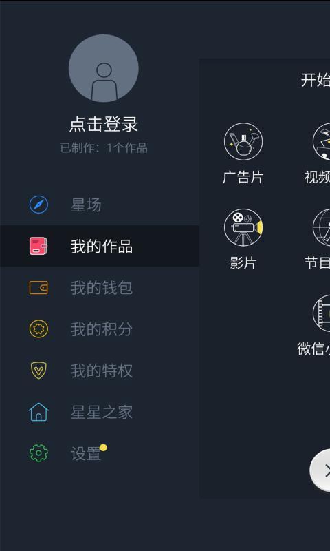 在这里,我们可以制作广告片,视频相册,开场片头,影片,节目制作,模板定制以及微信小视频额。