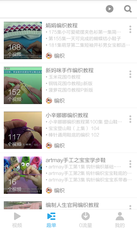 手工编织视频app是专为手工编织打造的食谱应用,能随时查看各种手工艺品的制作方法,了解各种毛衣的编织方法,更拥有各种创意编织视频,是您学习手工编织的好帮手。