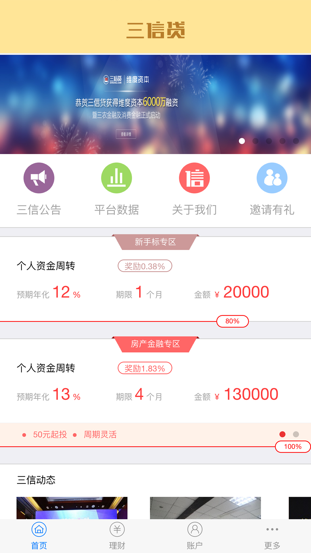 三信理财app是一款门槛低的投资理财互联网平台,让您随时随地都能直接通过手机进行快速的理财哦!理财其实很简单,只需下载到手机,就可以及时的掌握理财的动向哟!你与财富就差一个app的理财软件啦!