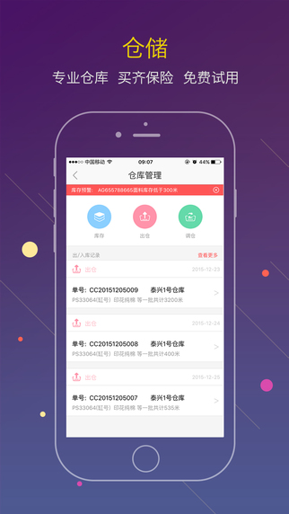 物流中心 自建物流中心,配备专业司机团队,珠三角上午下单、下午送达。APP一键叫车,GPS全程追踪,让配送了如指掌。