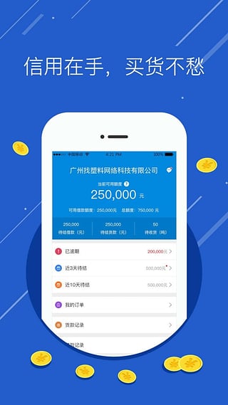 找塑宝app是找塑料网推出可供客户查询信用额度、结算详情以及合同执行情况的一款手机移动应用。专注于为塑化行业上下游客户提供全方位金融服务,一站式解决客户融资难题。未来该款产品也将继续开发出塑料商城、订货、物流、金融、售后等一站式服务功能。