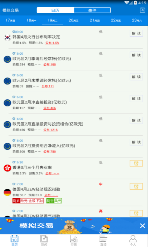 模拟交易活动正在进行中,欢迎大家积极参与!现在就参加get交易新技能!下载APP即可参与!另外还有外汇交易大赛,有机会赢取精美奖品哦!