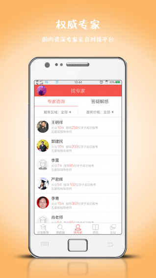 3找专家 通过平台免费向国内权威的高考专家进行网上咨询,通过绑定专家享受“一对一”的贴心服务。