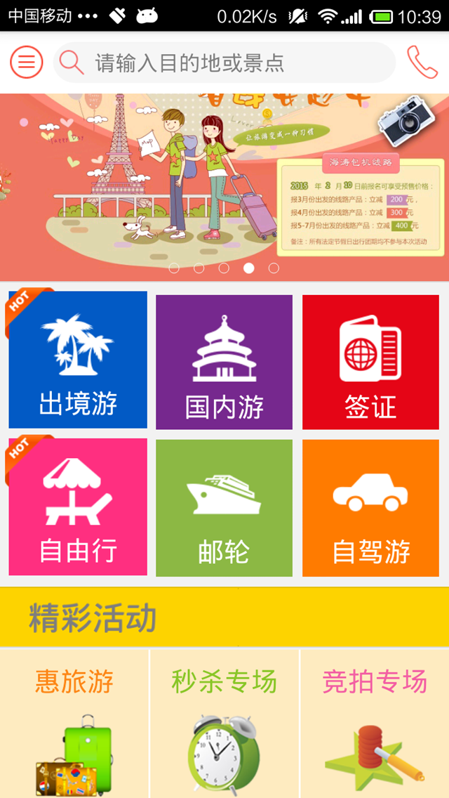 简洁、清新的界面让您随时预订,说走就走;精心、高品质的服务,让您的出行更方便、省心;参团、自驾、自由行,各种类型应有尽有;数百条旅游线路,总有一条是您想要的。
