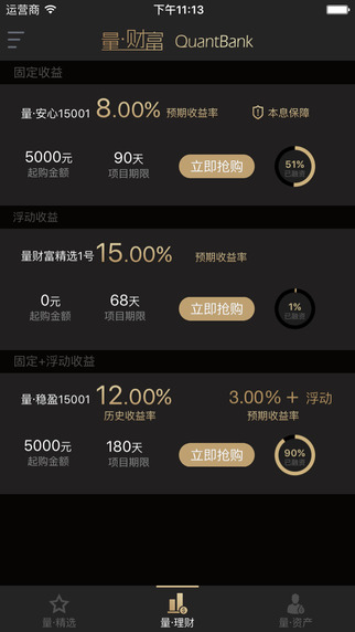 4、量·稳盈系列:6个月期限、最低年化3%固定收益,浮动收益可达年化15%以上;
