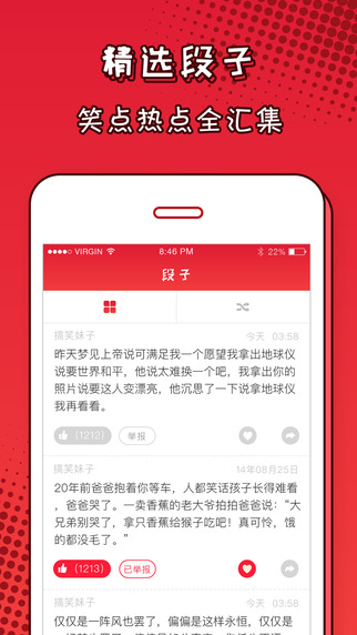 2.严格把控段子质量,保证最新最热的笑话段子、内涵图片、搞笑视频源源不断的涌入。