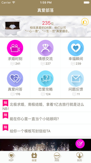 加入Dr族,与真爱同行。在Dr族app拥有最私密的二人世界,随时随地定位、发送幸福暧昧短语;除了多种私密的贴心功能之外,Dr族还可以在真爱部落向全世界绽放你的爱,晒爱情故事、表达爱情感言、浪漫求爱、秀Dr钻戒与饰品;邀请拥有真爱理念的朋友加入Dr族,正能量聚集Dr社区。