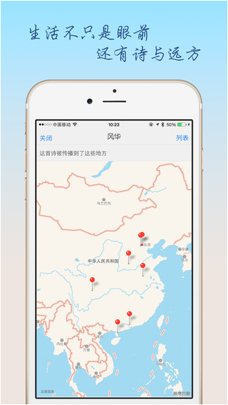 点击诗歌左下方的地理位置,就可以查看你的诗都被推荐到了哪里。