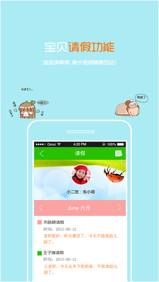 该软件以幼儿园孩子家长为出发点,使得家长之间,家长与老师之间实现零距离沟通,一起交流孩子的教育成长 。同时为孩子的安全、健康成长提供保障。让家长更好的了解孩子在学校的学习情况和生活状态,同时见证孩子成长的快乐时光。