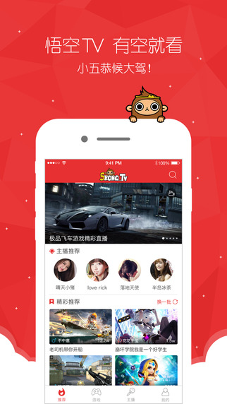 悟空TV,一群简单、爱玩的年轻人做的手游直播APP。