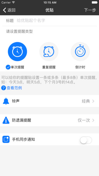 2、新增防止遗漏提醒,减少因偶尔听不到闹铃而漏掉重要事情;