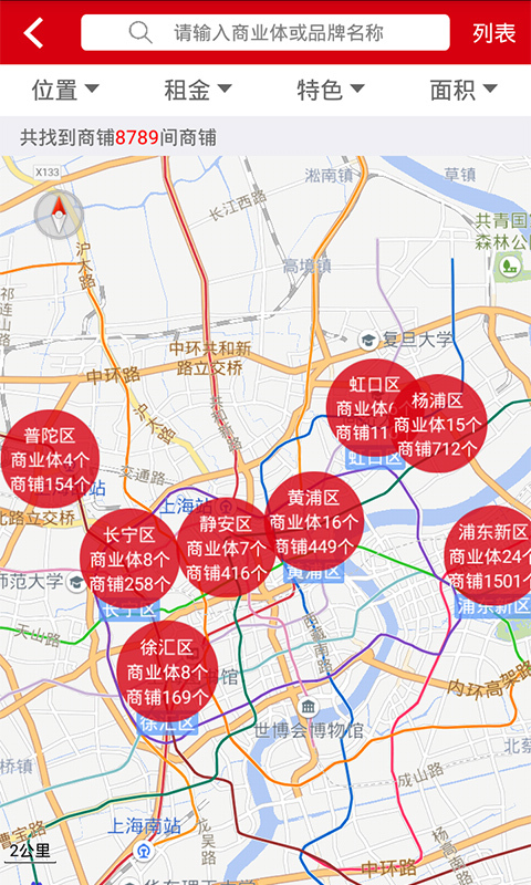 铺位基本资料、设施信息、周围环境一应俱全,支持分类筛选,信息更准确