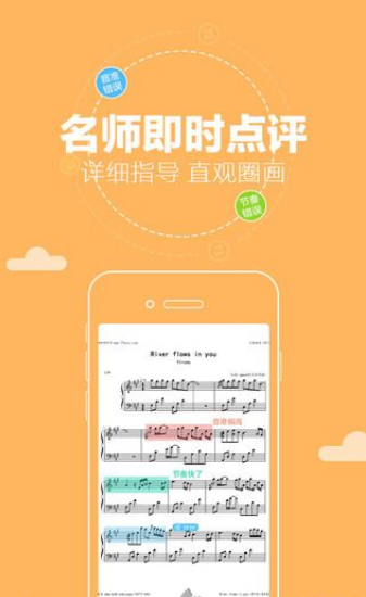 2、他们会针对用户上传的演奏作品(音频或视频形式),在作品关联的曲谱上进行圈划点评形式的详细标注,提供最直观有效的辅导;