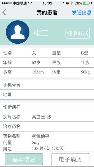 3.我的患者—可以查询您的患者信息,并主动给患者发送信息。