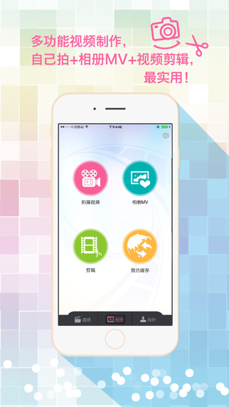 2、视频创作:拍摄原视频,制作相册MV,剪辑缓存里的云视频,多种功能供你随意进行灵感的挥霍;