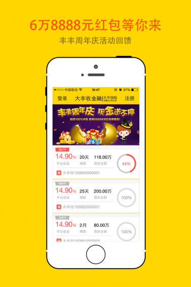 大丰收金融,致力于成为用户的“私人定制”理财管家,也是全国P2P行业首批通过中科院旗下北龙中网各项验证且验证深度达到五星的网贷平台。