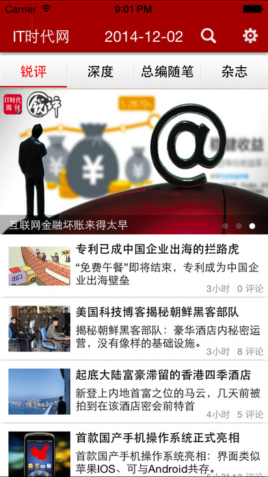 “杂志”栏目则是《IT时代周刊》杂志的内容,下载新闻客户端,你不用跑到报刊亭也能读到最新的《IT时代周刊》。除了最新一期,用户还能查阅到往期的内容,新闻客户端就是杂志读者随身携带的专属书架。