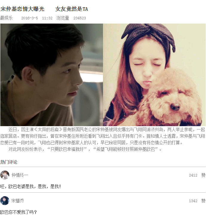 宋仲基女朋友生成器是一款当下非常火热的装逼神器,自从宋仲基公布恋情之后,也是导致很多女粉丝都很难过,那本次小编也是给大家带来宋仲基恋情在线生成器,立马变成宋仲基女朋友哦,快来试试吧。