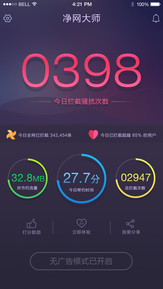 净网大师iPad版是净网大师苹果版之一,不仅能够高效的拦截游戏内嵌,插页等广告,还能够过滤国内主流视频广告和视频软件广告。