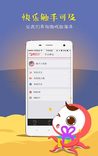 触手TV是中国第一家专注手机游戏的直播平台,无需电脑,只需要使用自己的手机,即可让玩家随时随地通过手机直播来实时分享自己的手游乐趣。