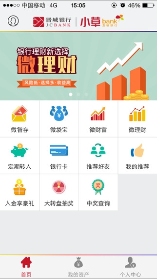 小草银行以“我的互联网银行”为理念,所有注册流程、业务办理、资金进出均实现纯线上操作。目前共推出“微袋宝”、“微智存”、“微理财”三款增值产品,最低1分钱就能做理财。资金往来可通过包括晋城银行、工商银行、交通银行等在内的绝大多数银行的现有借记卡实现,不需客户新开银行卡,不需在物理网点间往返奔波。