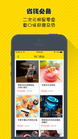 二次元、吃货战队、生活家、潮酷、奇葩杂货……从酷炫的潮鞋到美美的衣服,从逗比整蛊产品到最新的新番动漫周边,从日本的抹茶到欧洲的巧克力,一切小伙伴们喜欢的产品,神奇百货统统有!
