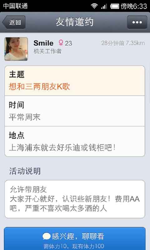 此类型的线下快速约会交友应用显然小编是没有用过的,虽然目前来说有一定的用户群体,但是使用该软件交友的时候还是请大家谨慎,约会地点应该在公共场合,例如咖啡店、茶馆、公园或者电影院之类的,最好不要是私人住宅或宾馆,同时约会应当小心导购。