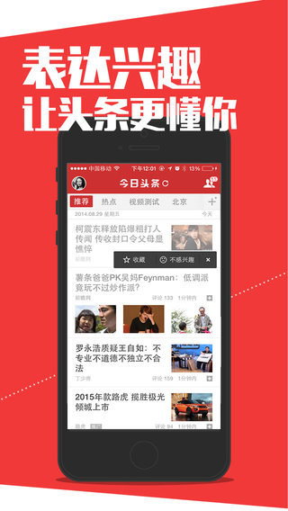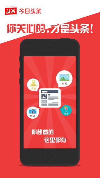 今日头条iOS版是一款用户量超过1.7亿的手机必备新闻客户端 ,占领AppStore新闻类榜首15个月 ,每天用户总在线时长4.5亿分钟 ,每天社交平台分享量达60万次,5秒钟掌握你的阅读兴趣点!