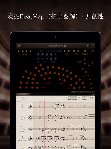 你可以发现节拍图示(BeatMap):突破性的表演可视化,显示了乐团不同分部的实时音乐脉动,帮助您了解每一作品的复杂性。用手指按住单独听到乐队的不同部分。