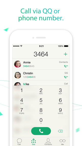 输入QQ号或者手机号就可以发起通话。获取通讯录权限后,也可以直接向通讯录中的号码发起免费通话。