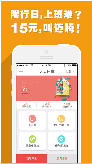 天天用车是一款很有爱的软件,方便你我的生活,遇到现行,很是烦躁?看看有没有人跟你顺路吧,搭个顺风车就上班去了。