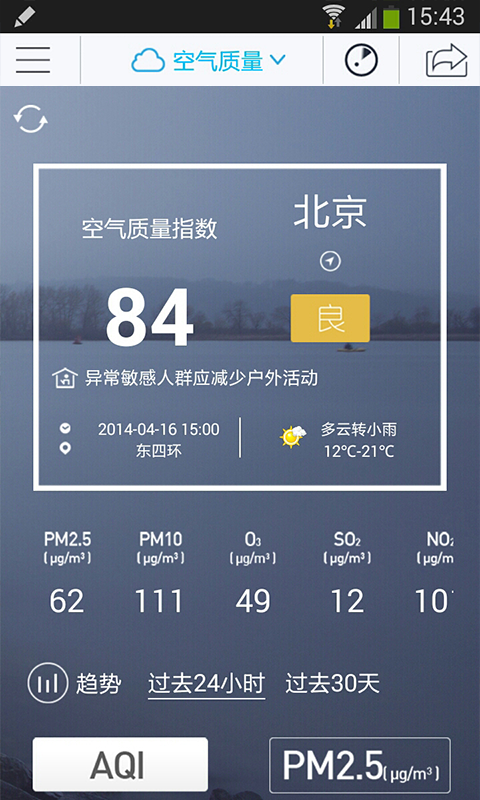 一款可以查询当前位置空气质量及空气污染源的软件