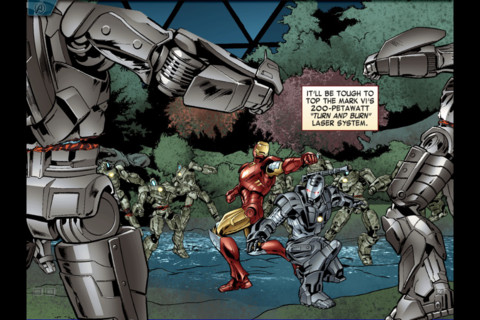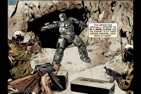钢铁侠之复仇者联盟《MARVEL’S THE AVENGERS: IRON MAN – MARK VII》是一款钢铁人的有声互动式漫画书,故事由主角史塔克在洞穴中开发出的钢铁人 Mark I 开始,分段以互动漫画方式,透过不同绘画内容,便可以进行不同动作,这个故事有 15 页之多,语音的部份点选字母便可发音,音乐来自于电影原声,让你沉浸在漫画之中。