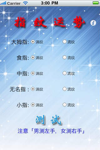 根据多年研究报告,人的性格是与生具来的。令人奇怪的是,人的指纹也是终生不变的。经过多年的研究,终于通过指纹可以辅助研究人的性格。下面的程序可以使您对自己或他人的性格有一定的了解,在生活中泰然处之。