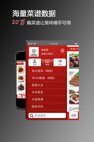 20万篇菜谱云端搜索,让您再也没有找不到的菜谱。