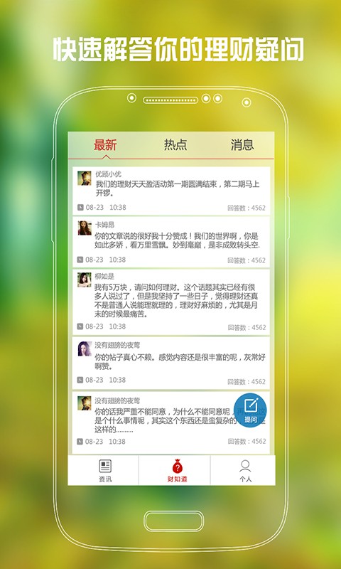 1.每天为你奉上鲜活实用的理财资讯,涵盖股票、贵金属、保险、银行、基金、彩票、理财产品。