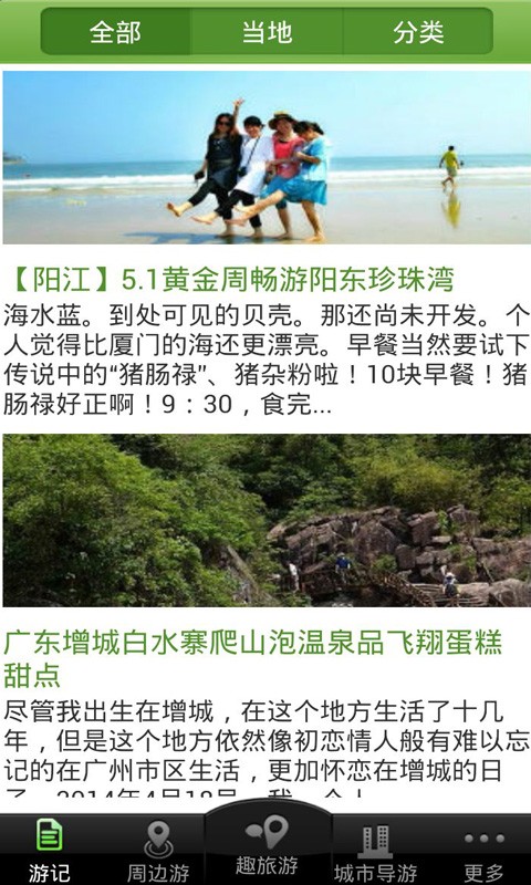 2.趣旅游,是人们周边游、自助游、自驾游、亲子游和休闲度假的最佳手机应用和好帮手;
