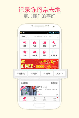查找:地图/列表双重模式,搜罗身边美食、电影、酒店、KTV等团购;