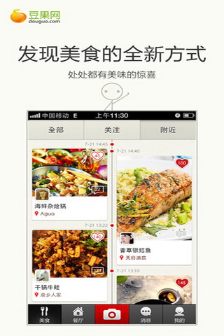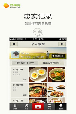 既然美味近在眼前,就别再寻寻觅觅。美食日记,为你发现身边的美食。跟所有与你同样热衷品尝的朋友一起,享受并记录每一个有关食物的幸福瞬间。美食日记不关心餐厅排场是否豪华,优惠力度是否诚实。我们关心的,是餐厅饭菜是否可爱,你的回忆是否甜蜜。看到诱人的日记和餐厅,别吝惜你的喜欢,我们会根据你的口味,知己般地为你推荐餐厅。豆果是全球首家且最大的发现美食、分享美食、交流美食的中文社区。不论居家亲自下厨,还是遍尝天下美味,我们都希望你找到属于自己的美食小幸福。:)