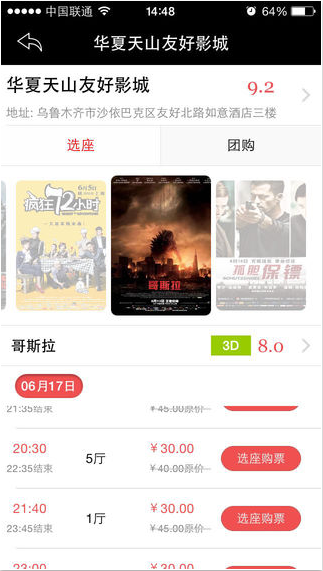 1.新疆40余家影院,电影票2-6折;