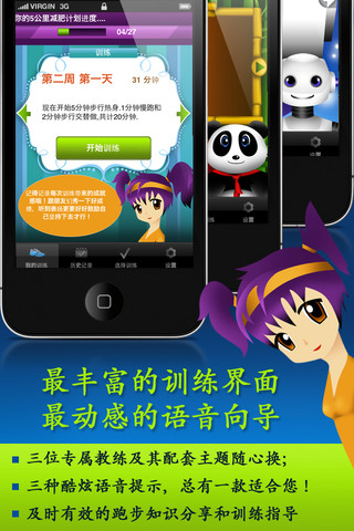 •语音提示会告诉您何时慢跑,何时步行,以及训练前热身训练后放松提醒;