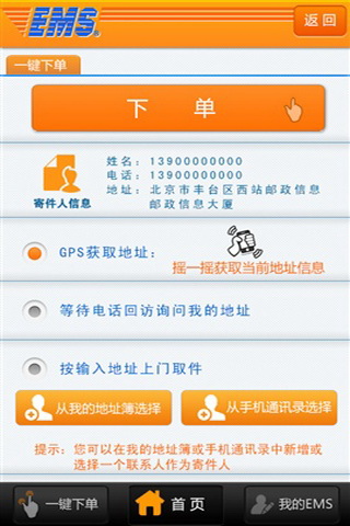 可从手机通讯录或者地址簿中选择寄件人电话,地址信息