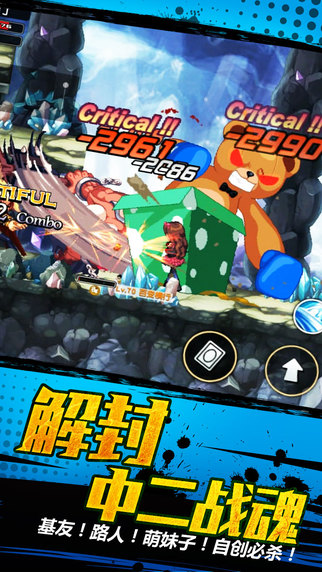 全程实时组队、3V3PK,助你征服基友,化身带妹狂魔~完美沿袭街机动作精髓,招式美如画,技能猴赛雷,炫酷连招瞬间爆炸,教BOSS做“怪”!