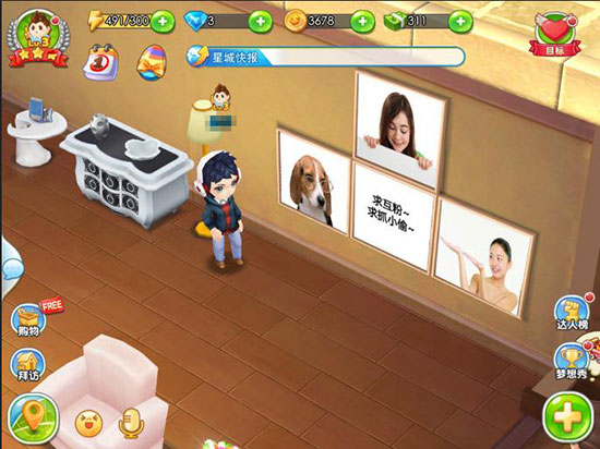 世界频道语音聊天,让全世界的居民一起畅谈。LBS定位找好友,同城异地都能结交在一起。名人排行榜可以让你随时知道你在城中名次,向高段位进行挑战。好友也可以随时拜访你家,为你增添人气。,你也可以邀请他们来家里做客参加Party,一起时尚时尚最时尚!