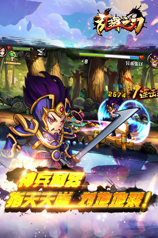 《乱舞之刃》采用Q版卡通风格,也使得游戏画面在风格上着重于“动漫”二字,结合浓墨重彩的三国背景题材,让人物形象从服饰到动作都显得帅气可爱,画面场景中的一草一木都变得活灵活现,深受动漫及三国爱好者的青睐。韩国专业原画团队重金打造大师级原画。从角色跑动时脚下飞扬尘土到战斗中流畅华丽的战斗技能,拳拳到肉的酣畅淋漓,无一不彰显出大片儿级的画质效果。