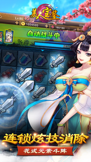《美人宝鉴》是一款私密订制消除类RPG猎艳手游,游戏将卡牌RPG与棋盘三消玩法完美结合,带来轻度休闲的畅爽战斗体验。游戏齐聚百位古典美人,融合冰、火、木三大元素,加入多种技能和道具,更有助战美人和灵宠,强大技能造成“崩盘”效果,使连消玩法充满百变策略。360度养成系统让你从里到外亲手打造自己的女神,营建香艳后宫。实时PK、公会守矿、120层试炼等多种玩法相结合,让你做一个风流香艳的春“消”梦。